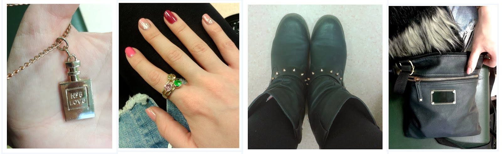 - k holínkám mám se stejně velkými cvoky na spodní straně větší koženkovou černou kabelku