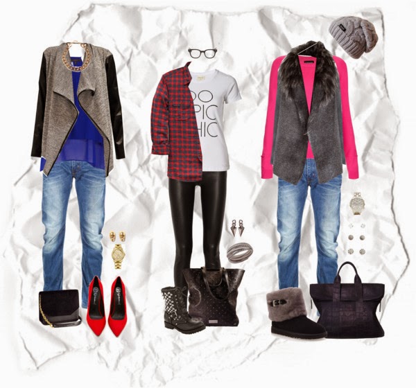 opět základy šatníku - bunda s kožíškem typ : párka, triko s dlouhým rukávem, Cardigan, kostkovaná košile atd...